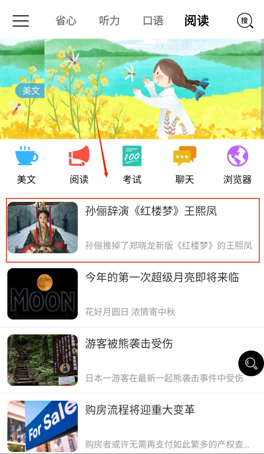 2、多元学习资源:整合英语绘本、美文阅读、双语新闻等多样化内容,从基础入门到进阶提升全面覆盖,满足不同阶段的学习需求。