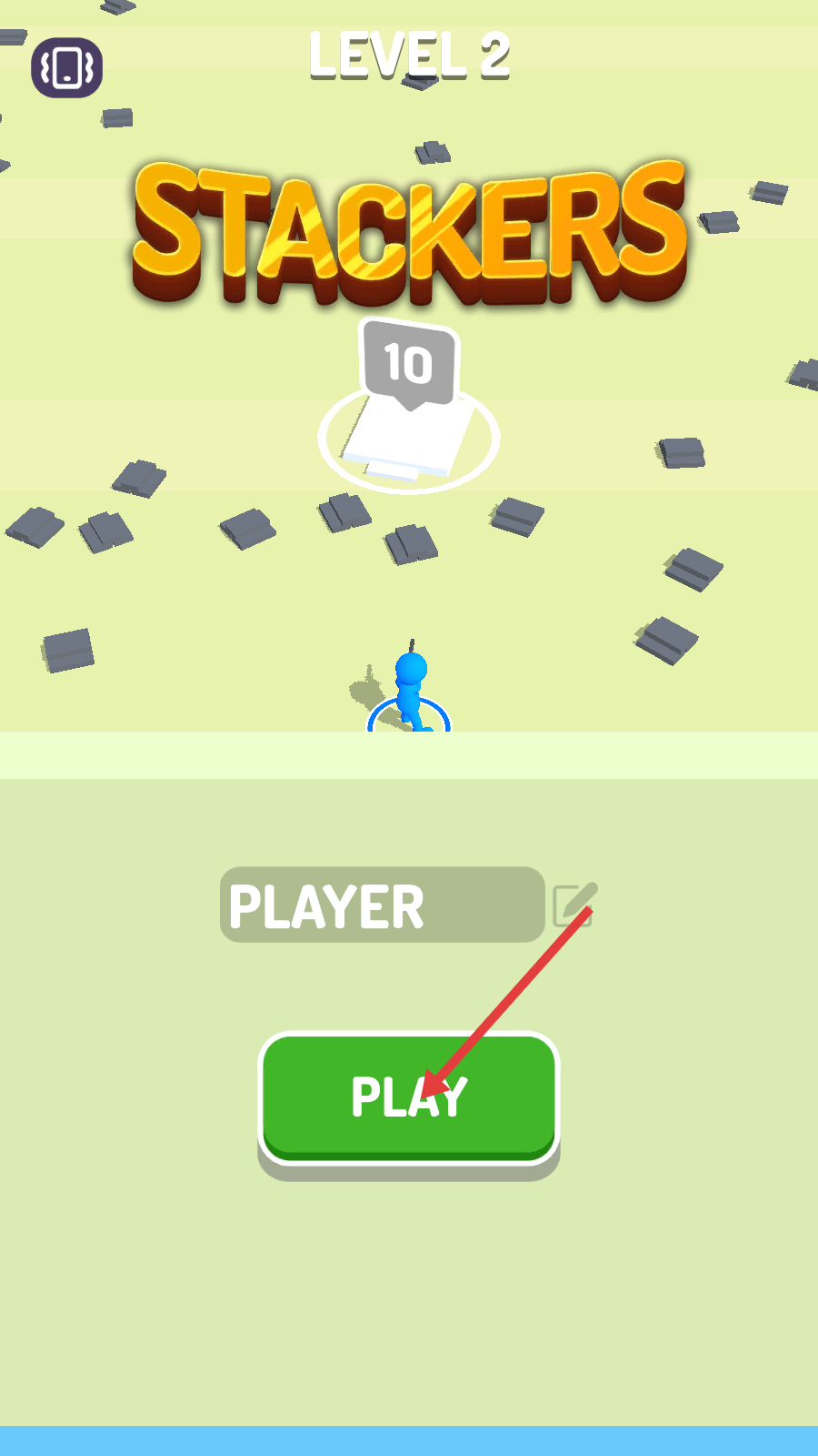 1、点击【PLAY】进入Level2,目标为收集灰色方块,堆叠构建建筑。