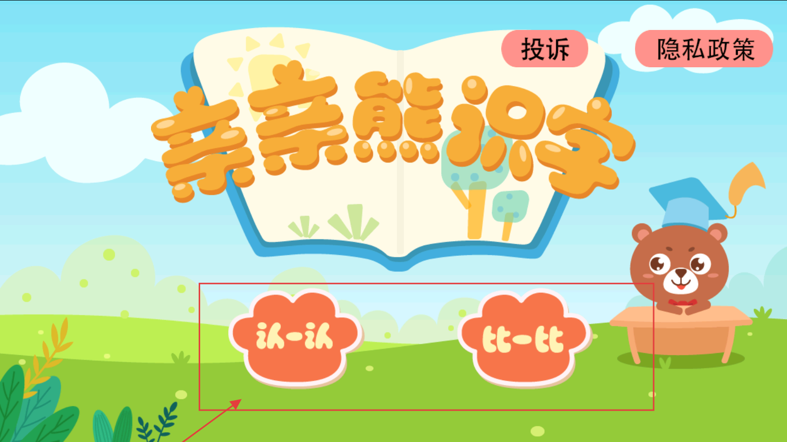 1、进入【亲亲熊识字】,选【认一认】或【比一比】,开启识字互动学习。