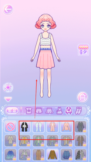 3、选择服装:点击选择不同的服装,为你的模特进行搭配。