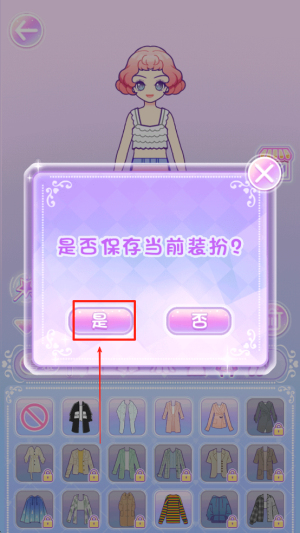 4、保存装扮:完成搭配后,点击“是”保存当前装扮,或点击“否”放弃保存。