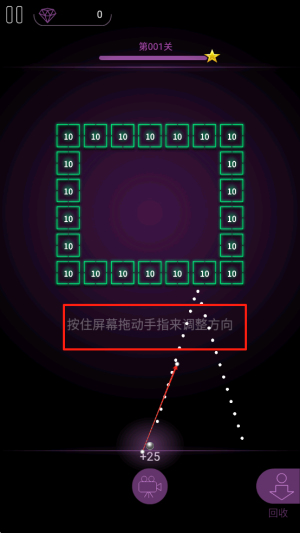 4、进行游戏:在游戏界面,按照提示操作,拖动手指调整方向并发射小球。