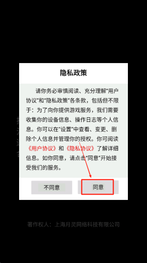1、同意隐私政策:在游戏启动时,阅读并同意隐私政策,点击“同意”按钮继续。