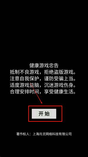 2、开始游戏:阅读健康游戏忠告后,点击“开始”按钮进入游戏。