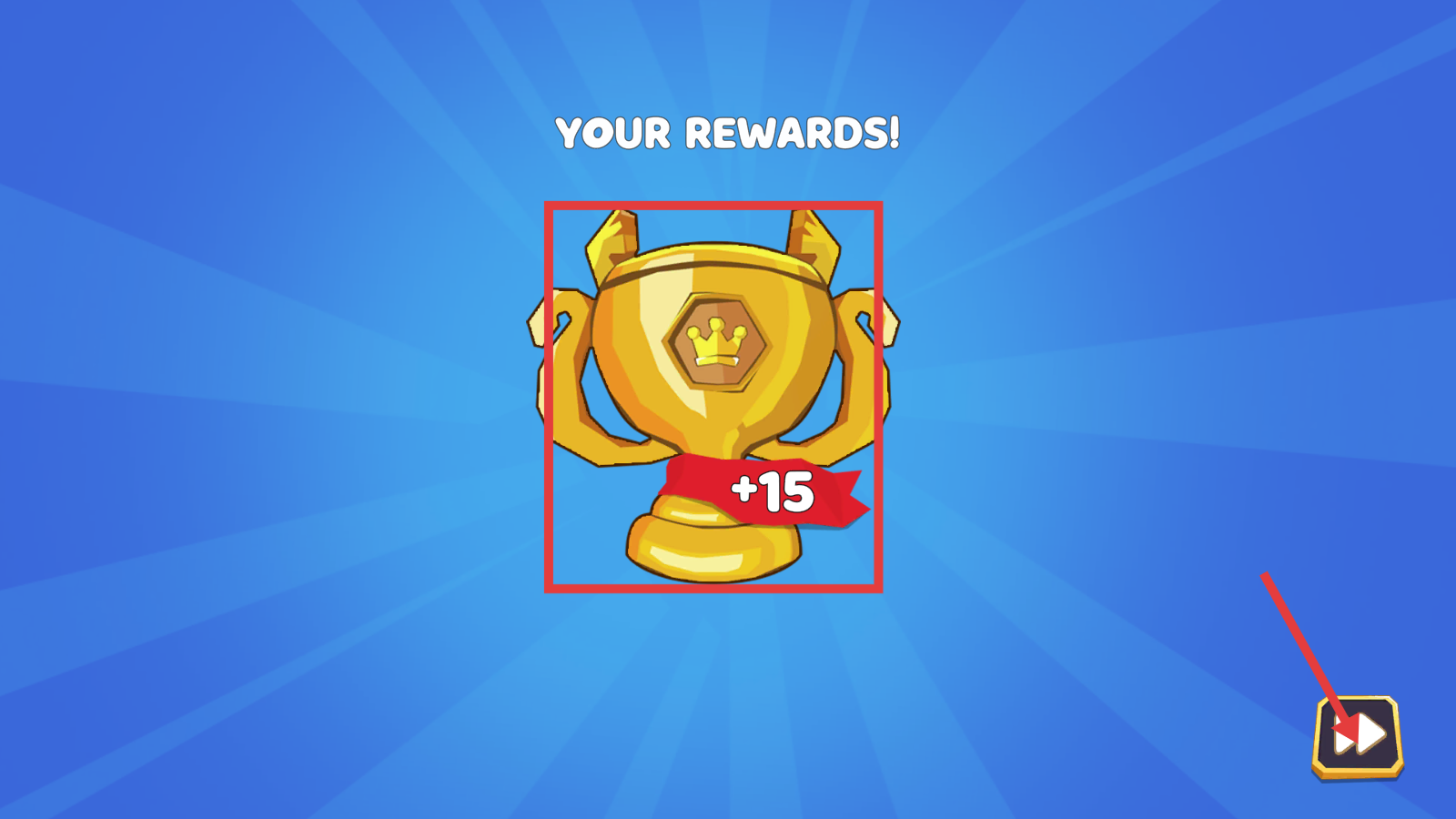 4、通关后领取【+15-奖杯】,点击右下角箭头,继续挑战后续章节积累进度。