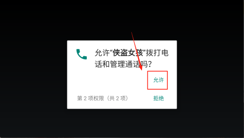 2、授权通话:弹出“允许侠盗女孩拨打电话和管理通话吗?”时,直接点“允许”,保证任务电话畅通。