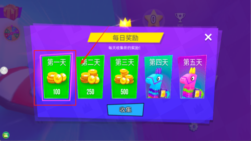 4、领取当天奖励:在“每日奖励 100”界面点击“收集”,立刻获得100金币并返回主界面。