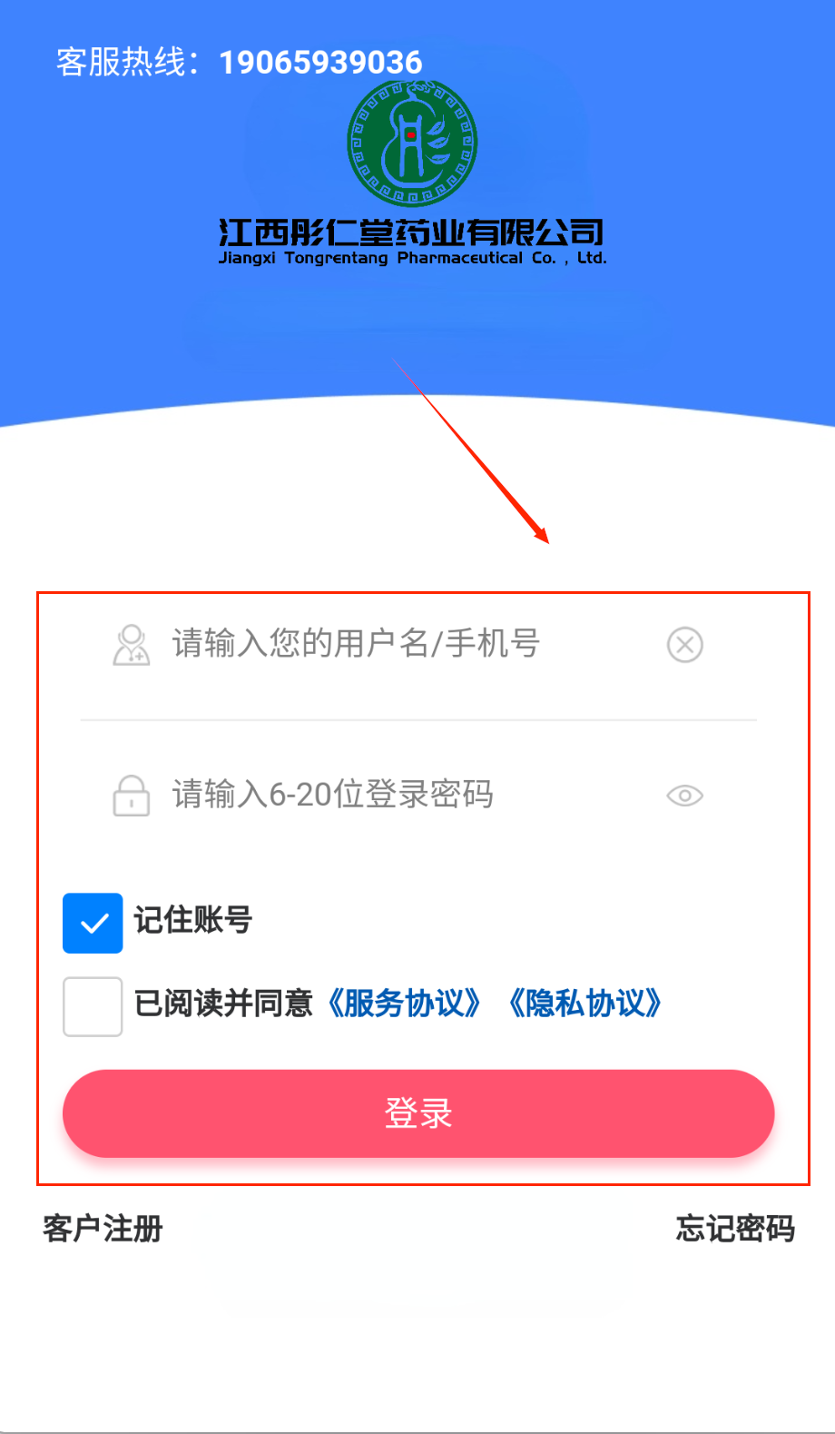 3、登录操作很简单呀,输入用户名或手机号,填写6-20位密码,勾选记住账号和协议条款,点击红色登录按钮就行。