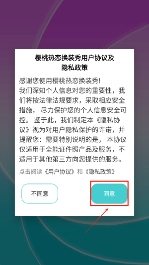 1、同意用户协议:阅读并同意用户协议及隐私政策,点击“同意”按钮以继续。