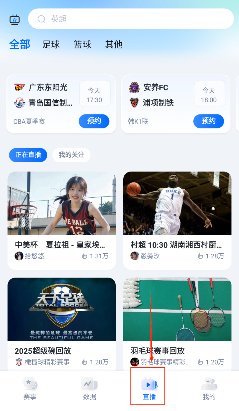 2、在直播板块选择感兴趣的赛事,支持高清直播与动画直播两种模式,用户可自由切换,同时参与弹幕互动或查看专家分析。