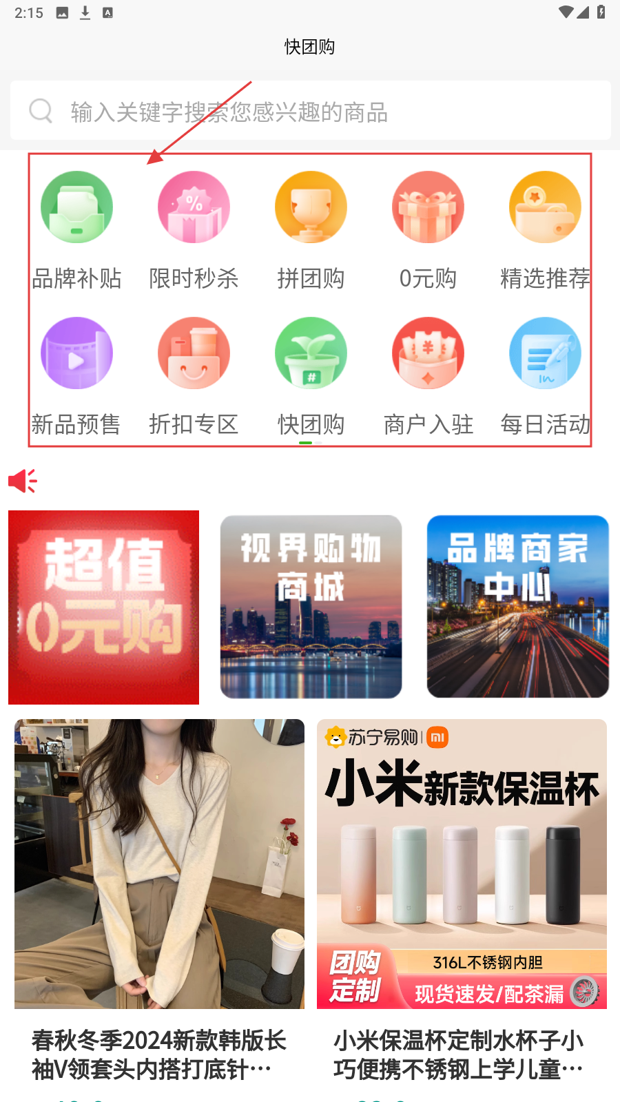 1、进入快团购,从【品牌补贴】【限时秒杀】等入口选专区,快速找优惠商品。