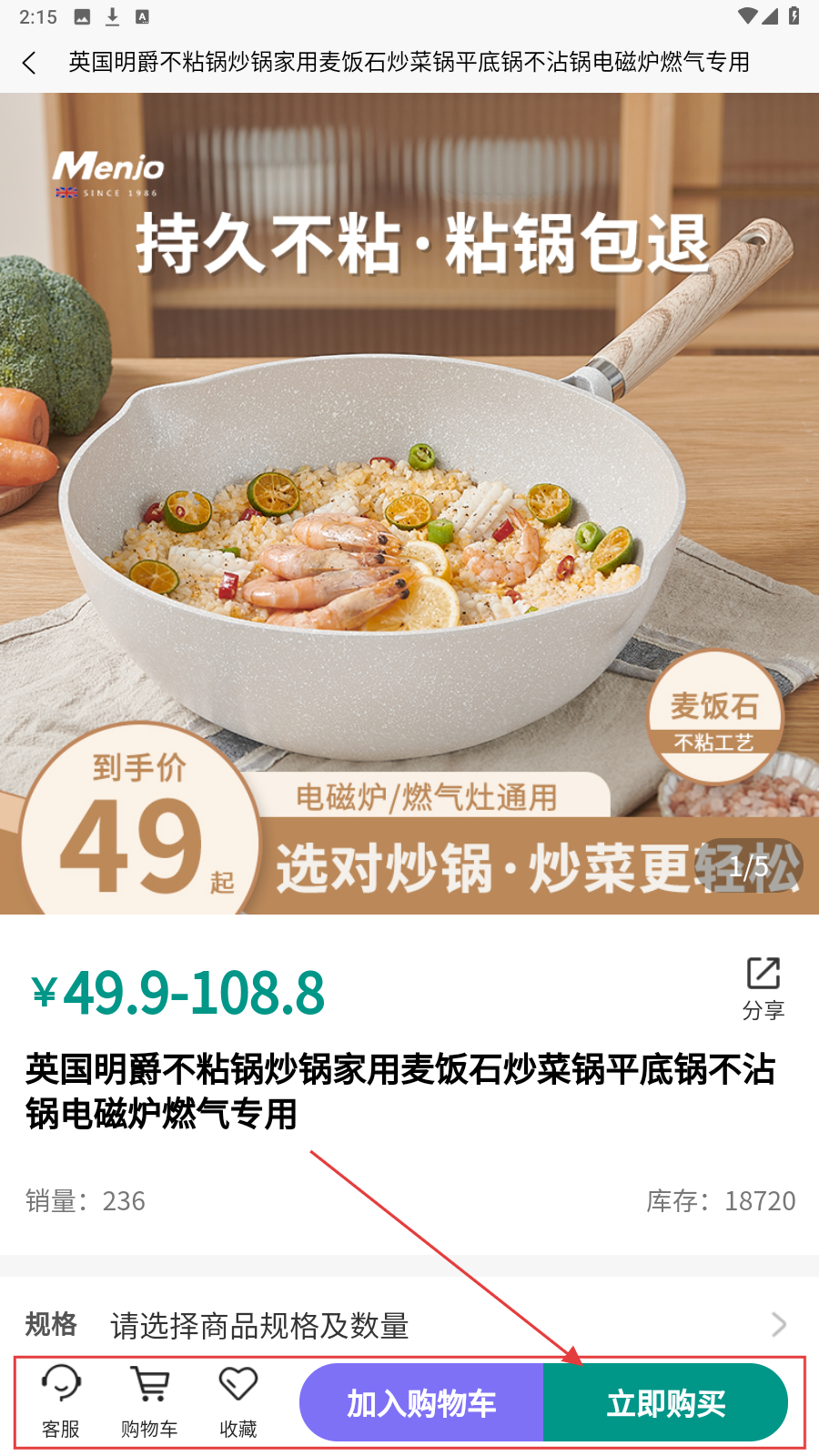 3、商品详情页确认想买,点【立即购买】,进入规格选择步骤。