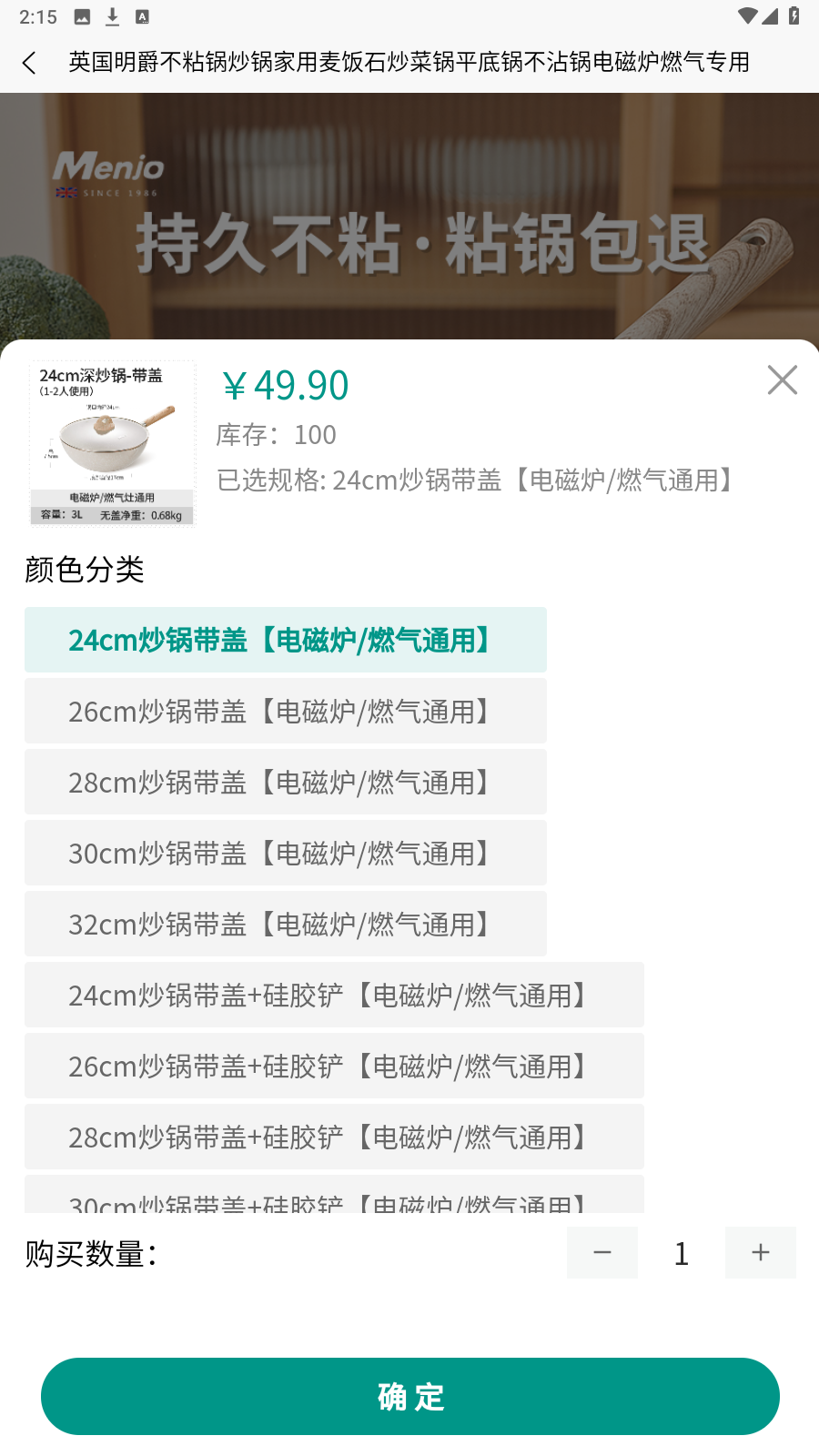 4、选【颜色分类】【购买数量】,确认后点【确定】,完成下单操作。