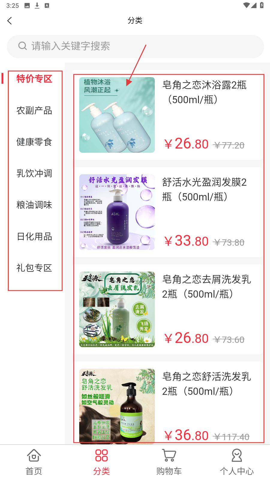 2、在分类页,选对应专区(如日化用品),浏览商品列表找心仪品。