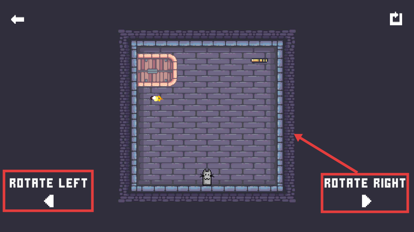 2、利用左右【旋转按钮】调整场景视角,辅助角色探索砖块地图。