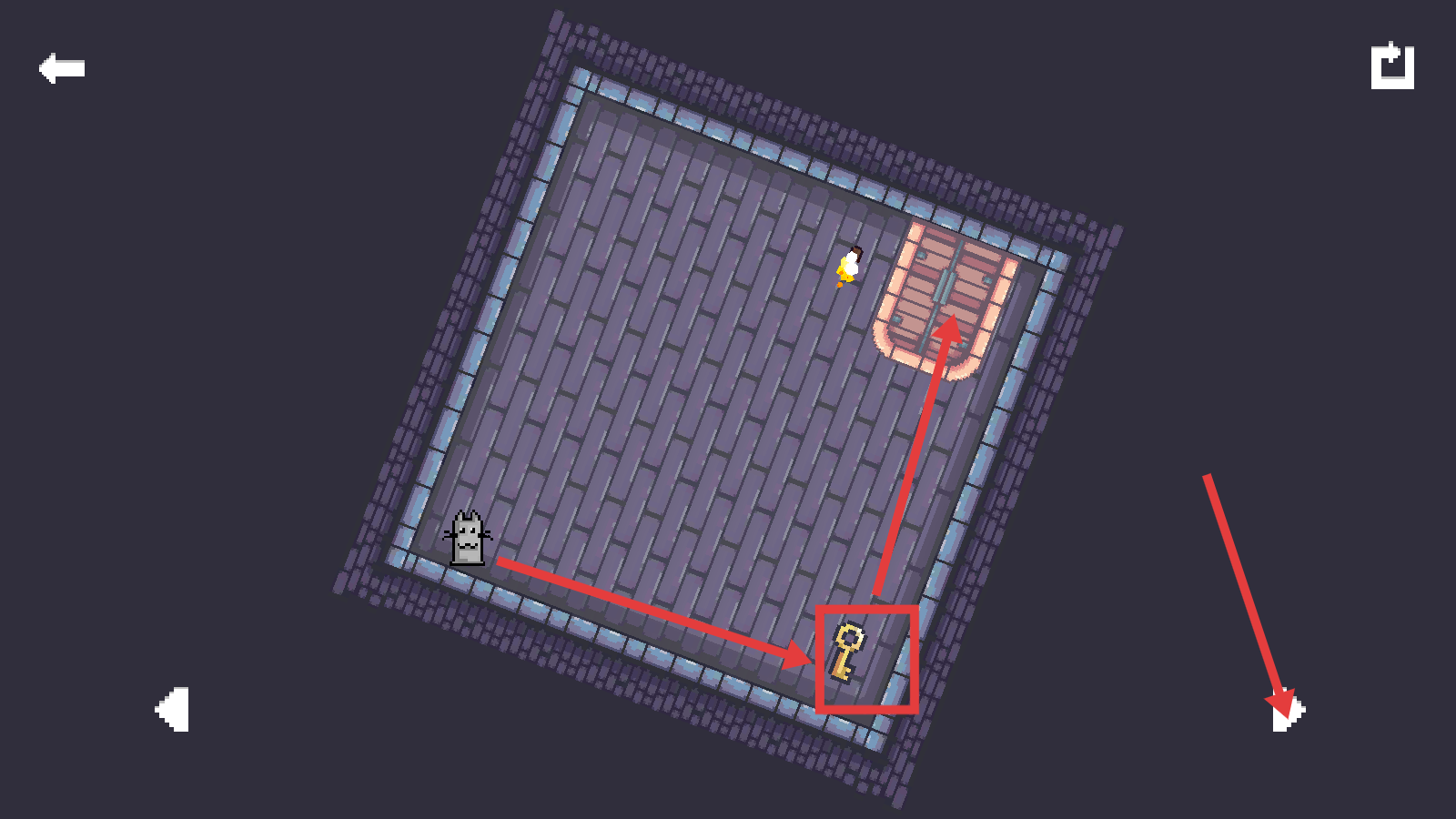 3、引导角色拾取【金色钥匙】,解锁左上角木门,完成关卡目标。