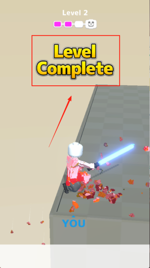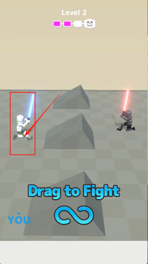 2、继续第二关:在Level 2提示出现后,再次拖动角色至敌人位置开始新关卡。