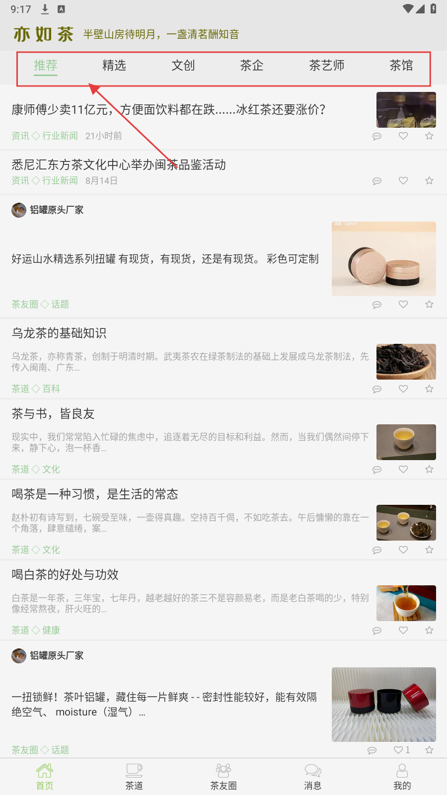 1、打开应用,在【首页】可以通过【推荐】查看有关茶业资讯的文章,选择感兴趣的文章点击。