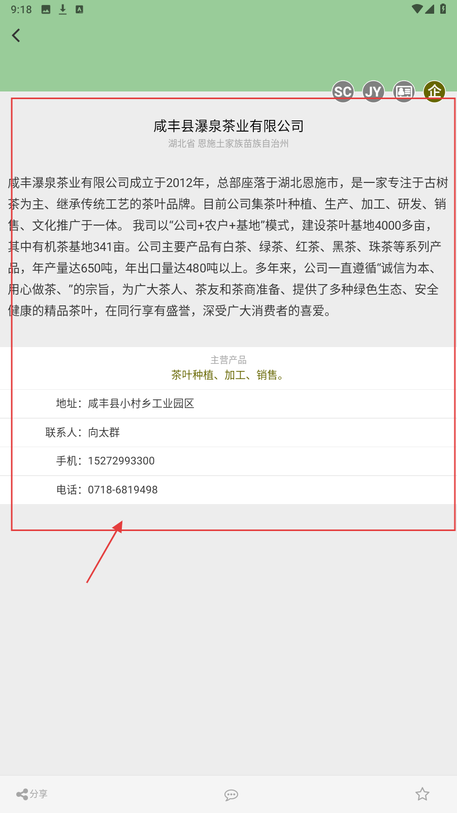 4、进入感兴趣的茶企详情页,了解茶企的详细信息,可以通过下方联系方式进行联系购买。