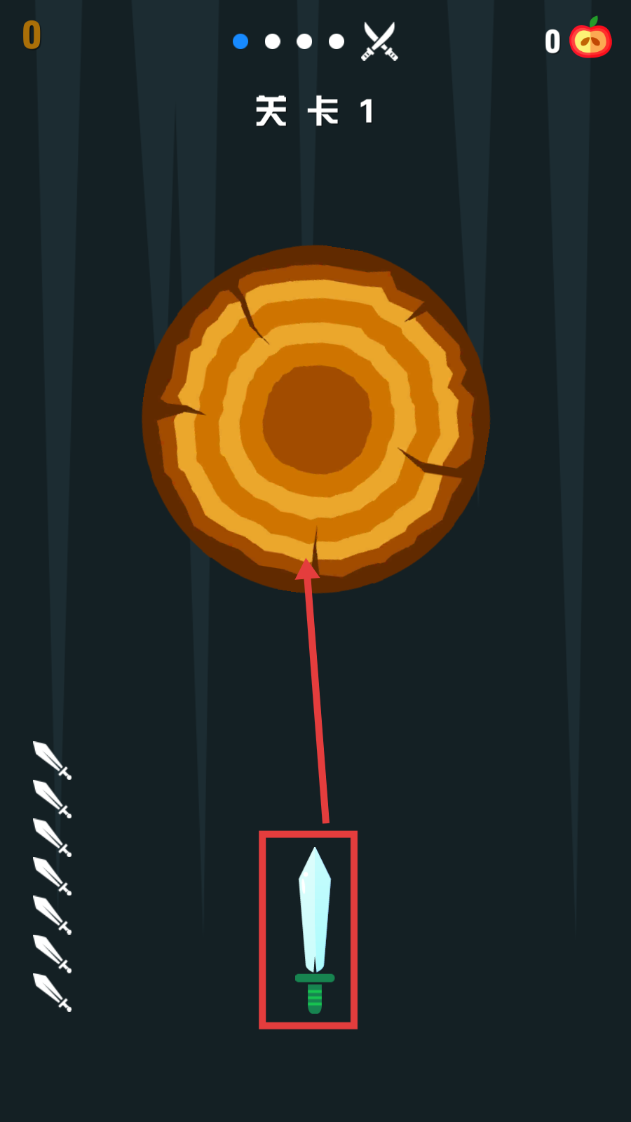 4、挑战【关卡3】时留意树桩旁的苹果,发射飞刀时尝试命中苹果,可获取额外奖励或分数加成。