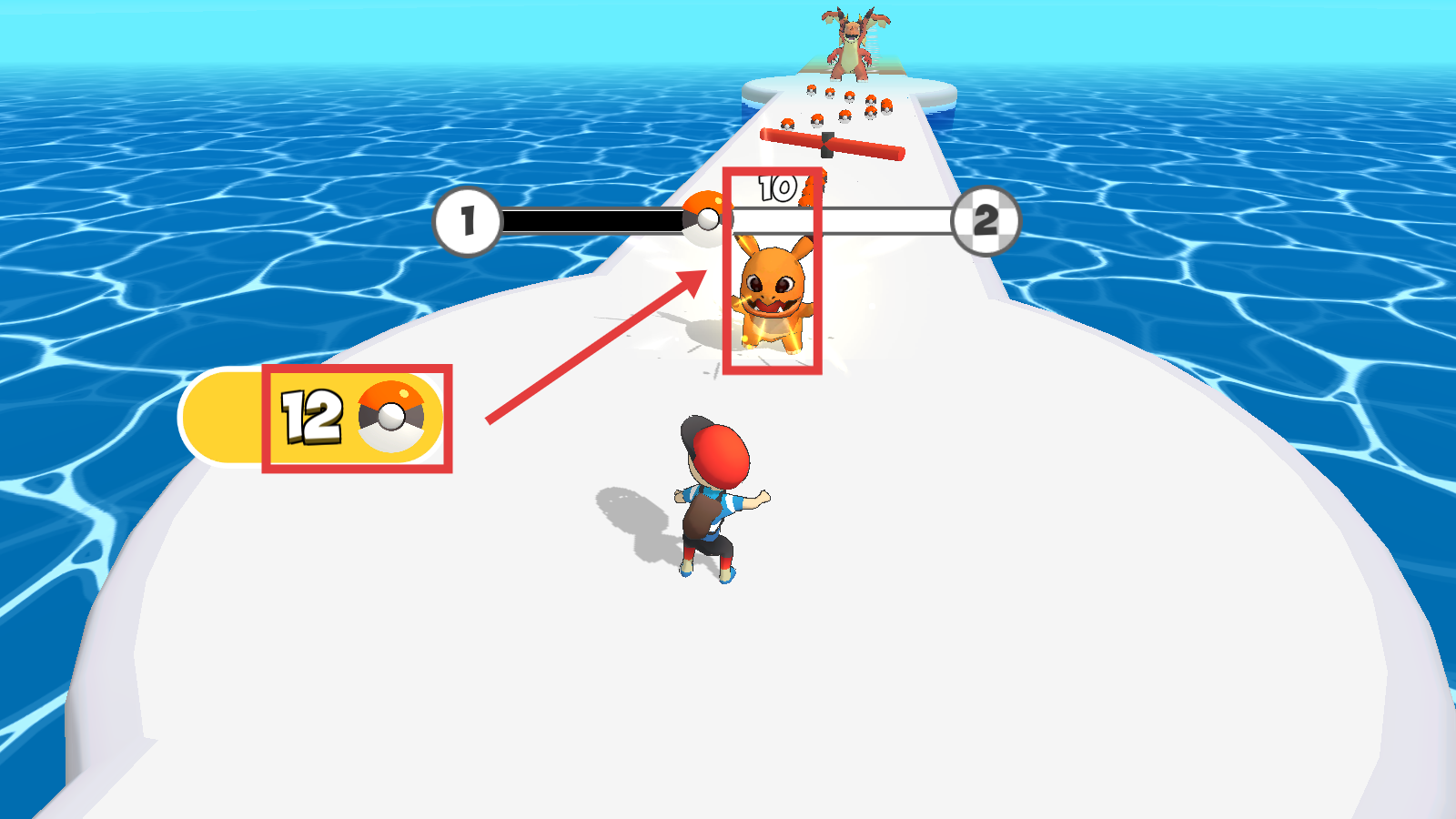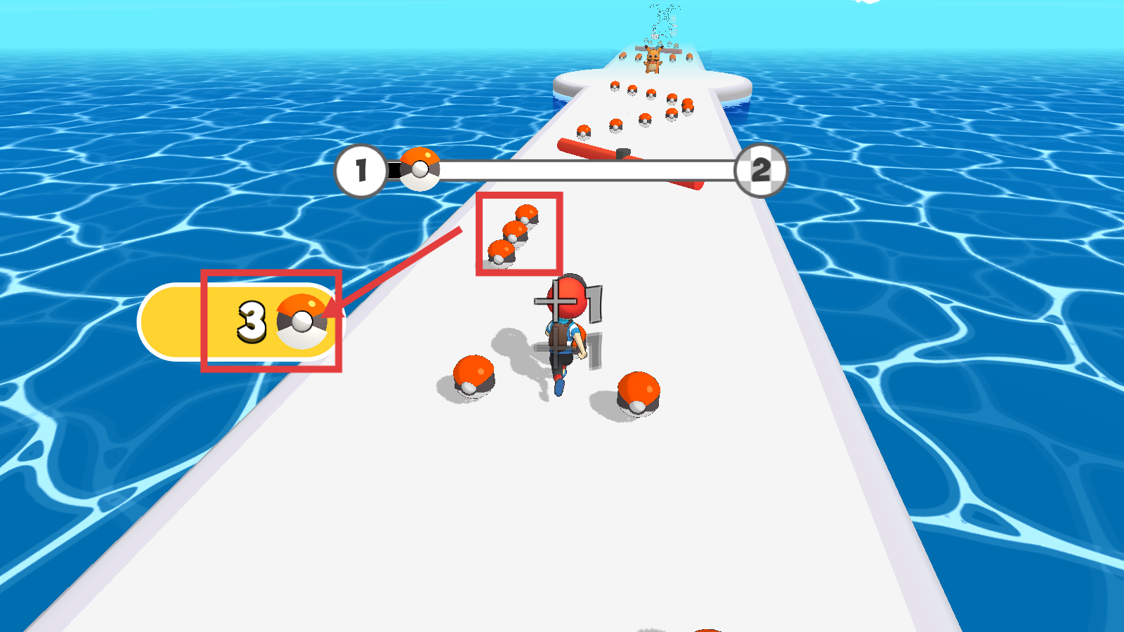 2、奔跑时紧盯跑道【精灵球】,快速收集使左侧计数达3,为后续战斗储备道具。