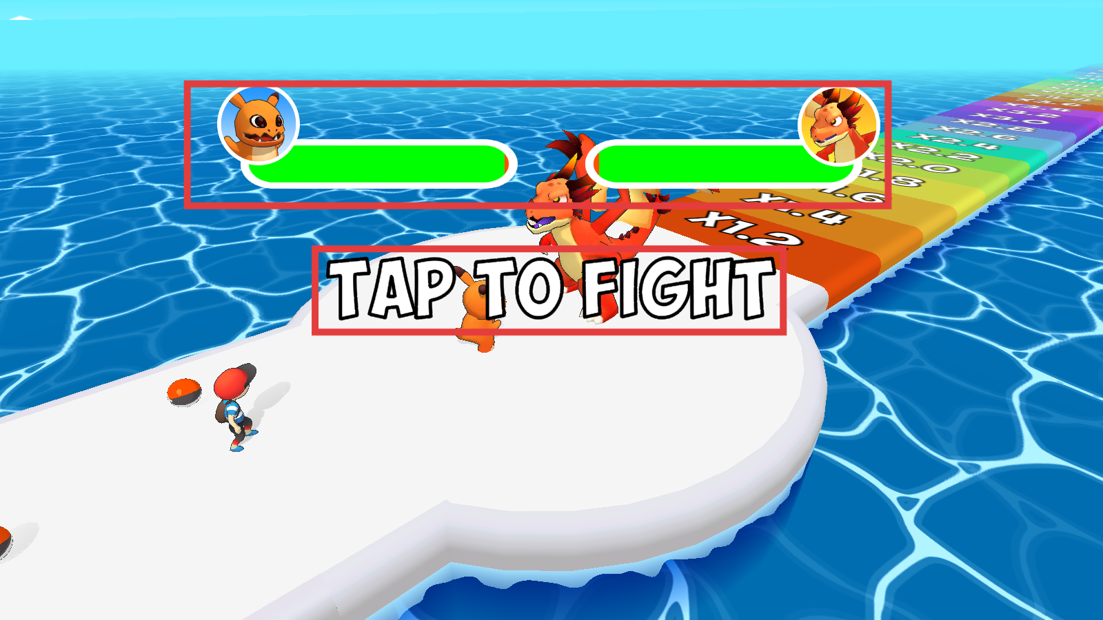 4、进入对决界面,点击【TAP-TO-FIGHT】,指挥捕获怪物与红色巨龙展开血量博弈。