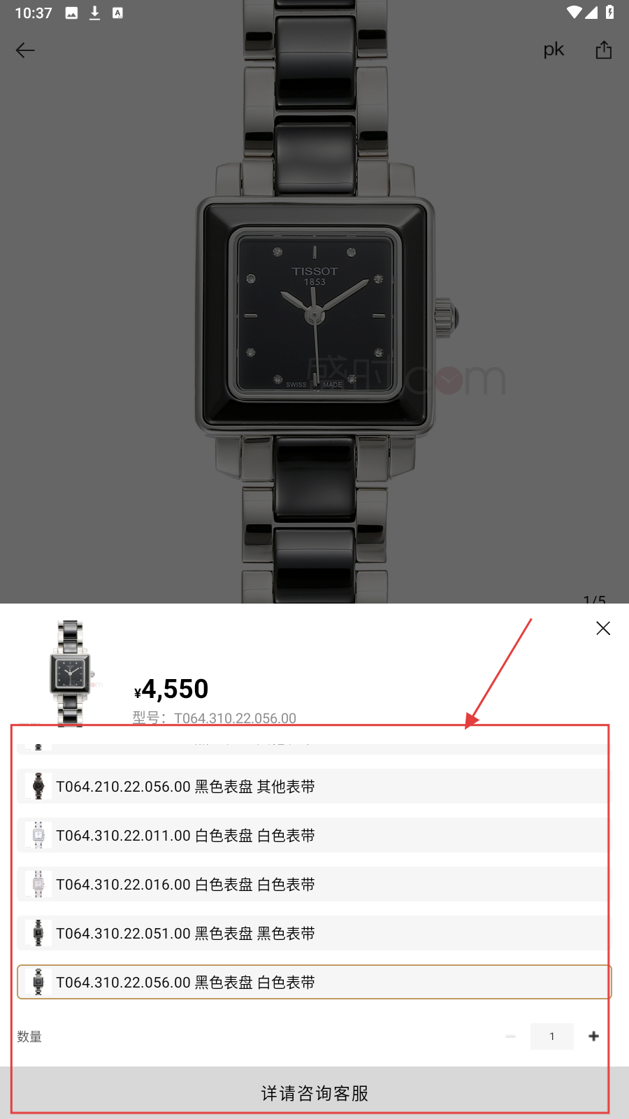 3、选择商品型号等,确认无误后再次点击【详情咨询客服】按钮。