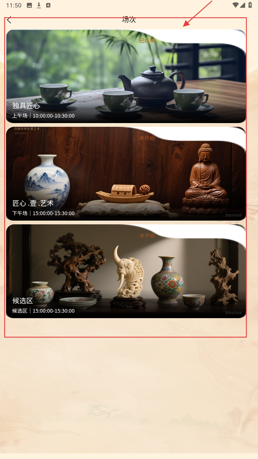 2、查看【场次】信息,选未开始场次,提前了解文玩展示安排。