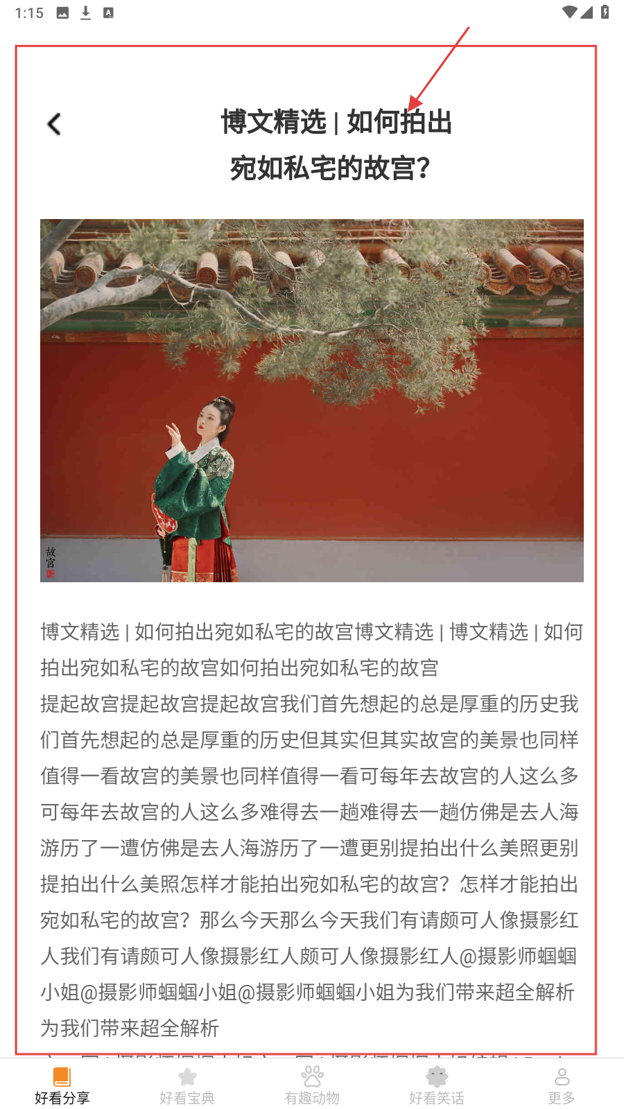 2、点进所选文章,仔细阅读内容,掌握拍摄特定场景(如故宫)的方法要点。