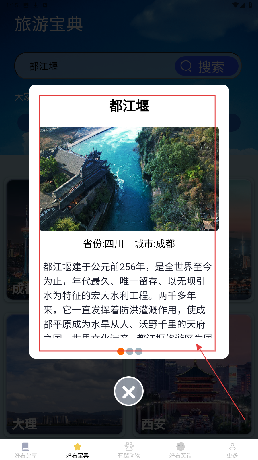 4、点选具体景点(如都江堰),了解历史背景与特色,为旅行做充分准备。