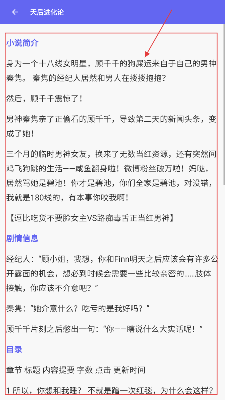 4、阅读时下滑查看【小说简介】,了解故事背景与角色,助于理解剧情。