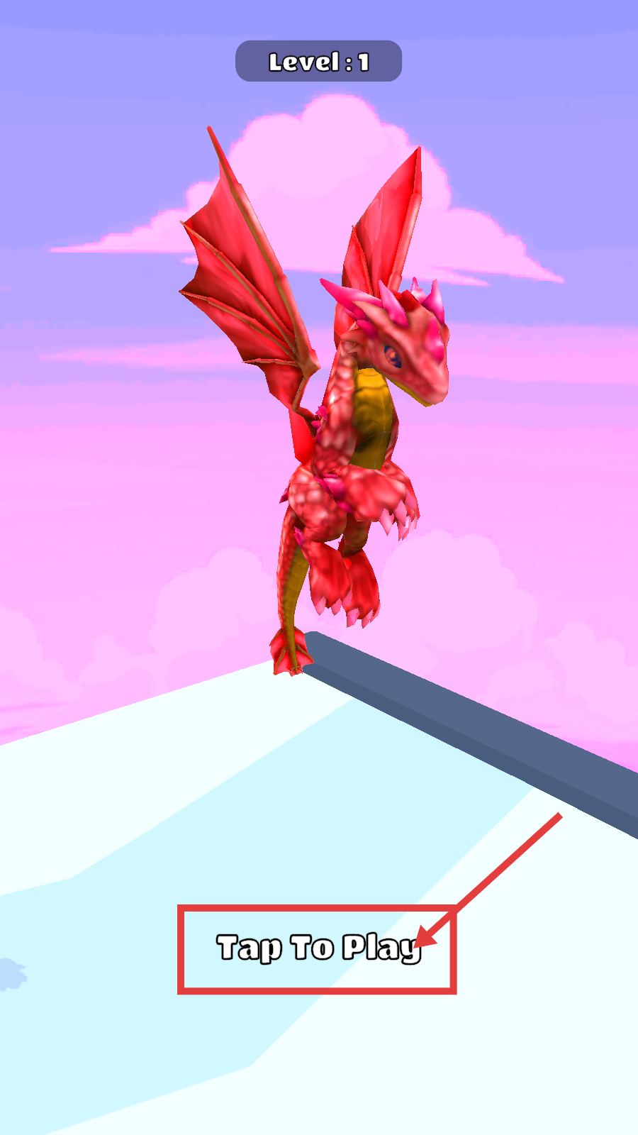 1、点击【TapToPlay】,操控【红色幼龙(Level1)】开启破坏城市冒险。