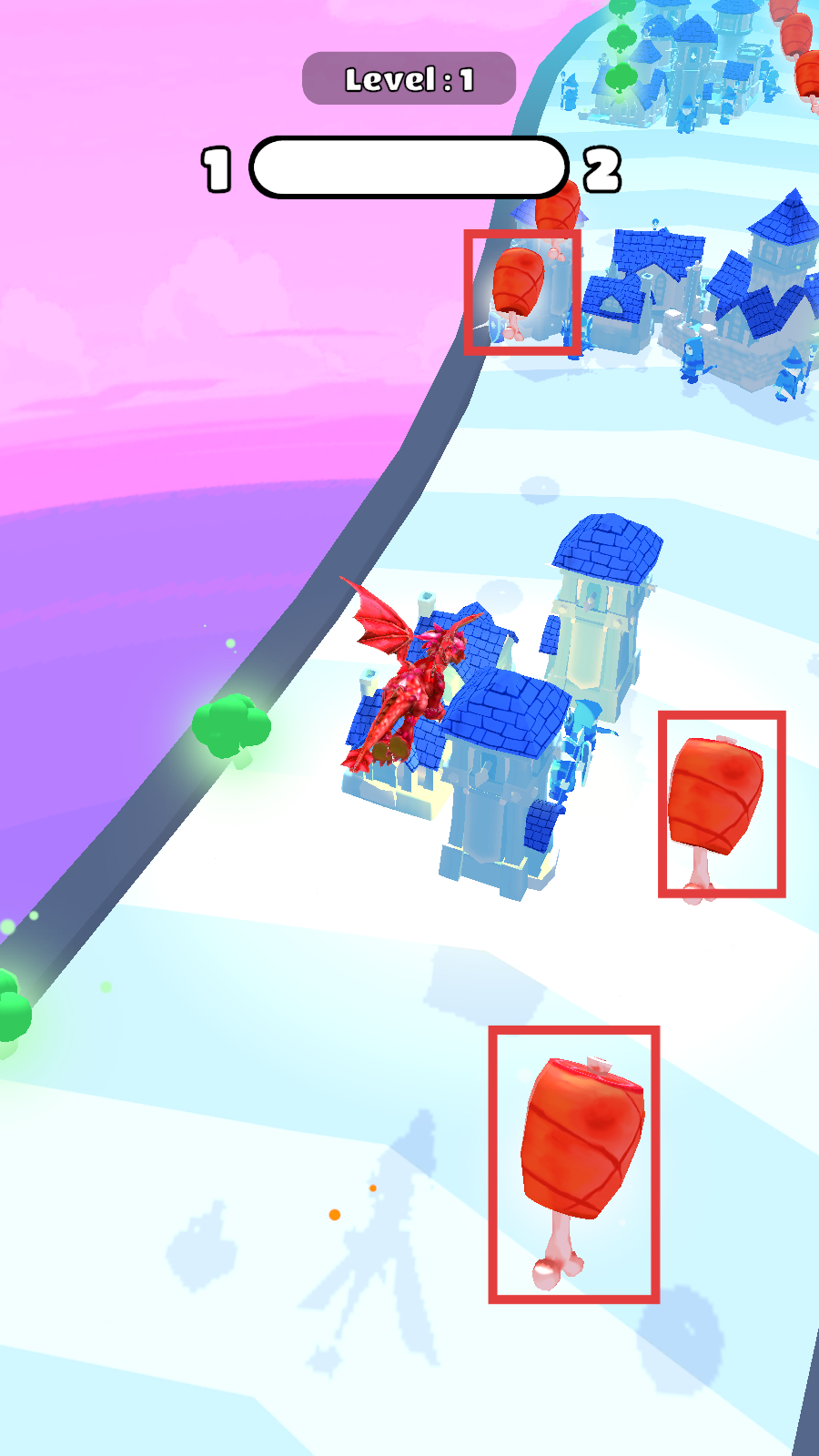 2、挑战中优先拾取【红色鸡腿道具】,积累成长资源,助力龙升级(如Level1→2)。