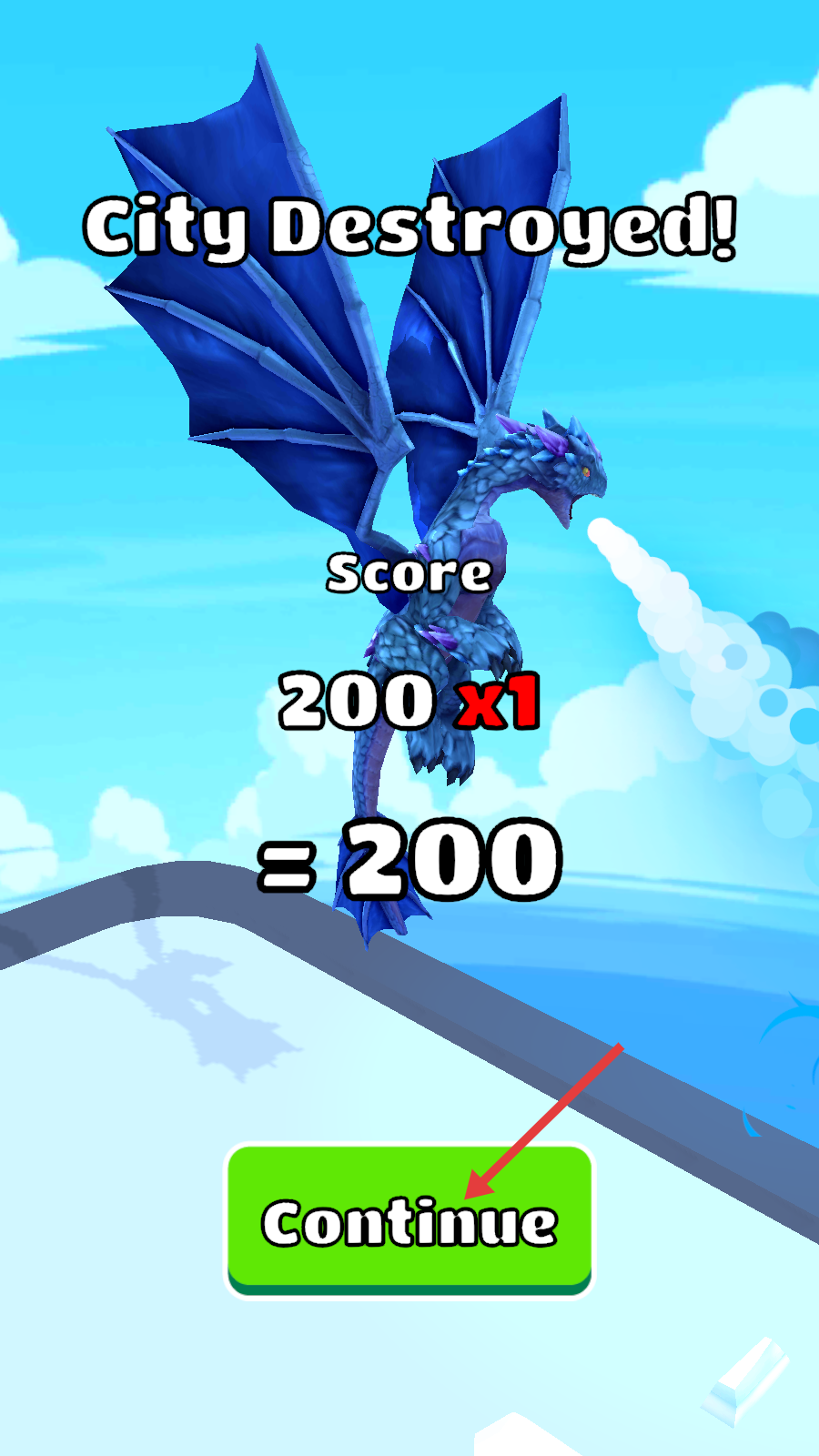 4、通关后点击【绿色Continue按钮】,进入下一关,积累分数解锁更强龙形态。