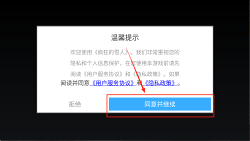 2、同意隐私协议:在温馨提示弹窗点击“同意并继续”按钮即可。
