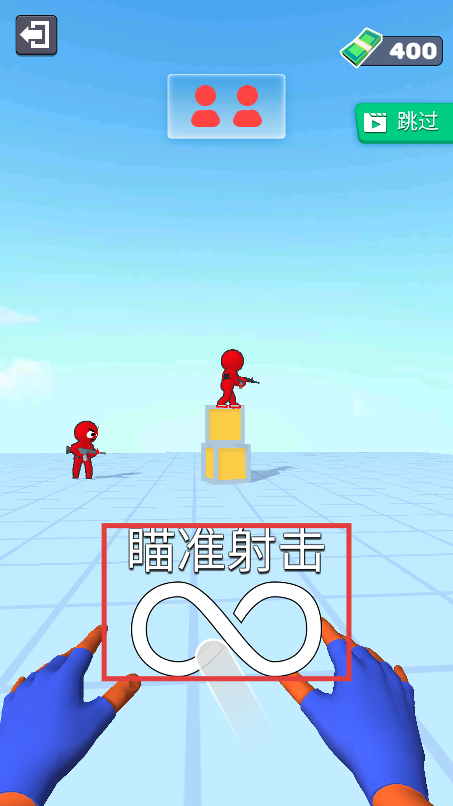 2、关卡内出现红色敌人,按提示【瞄准射击】,长按绘制轨迹攻击,也可点击【跳过】快捷操作。