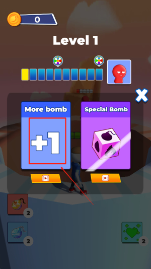 2、选择道具:在第一关界面,点击“More bomb”或“Special Bomb”来选择你的游戏道具。