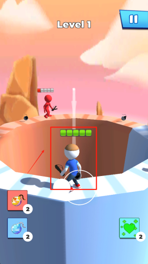 3、击倒平台盒子:瞄准浮动平台上的盒子发射,借助弹道反弹等技巧击倒所有目标,完成单关挑战推进进度。