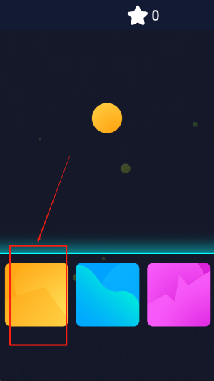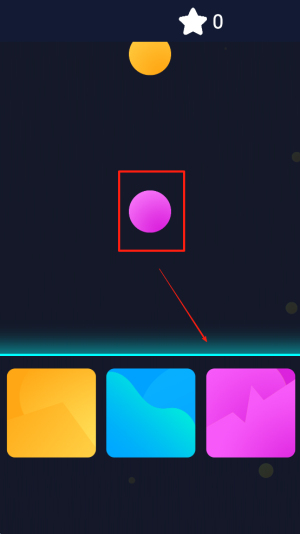 3、进行跳跃:当圆球即将落入下方时,点击对应颜色的方块,使圆球跳跃。
