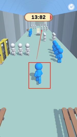 2、滑动控制方向:通过左右滑动屏幕调整橡皮人奔跑方向,灵活穿梭人群缝隙,为躲避障碍调整路线。