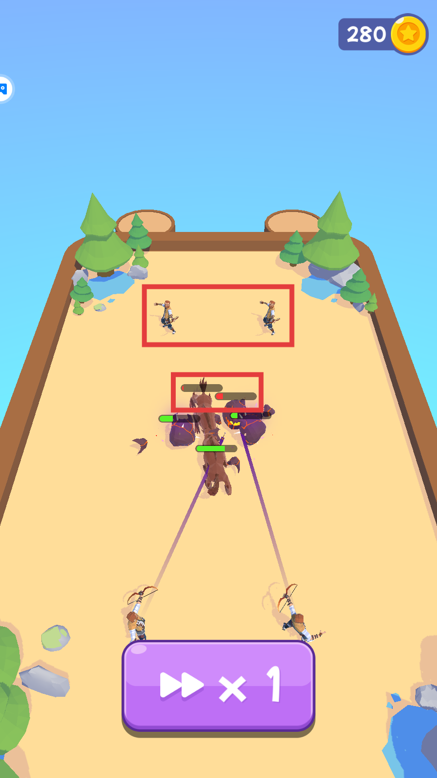 2、点击【开战】,弓兵攻击敌方远程,近战牵制前线,配合消灭敌人,推进战局。