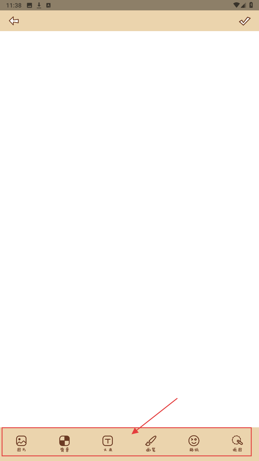 3、用底部工具(图片-背景等)装饰手帐,打造独特风格。