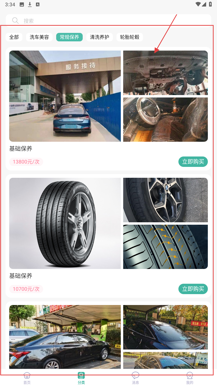 4、还可以切换【常规保养】分类,探索汽车养护服务项目及购买。