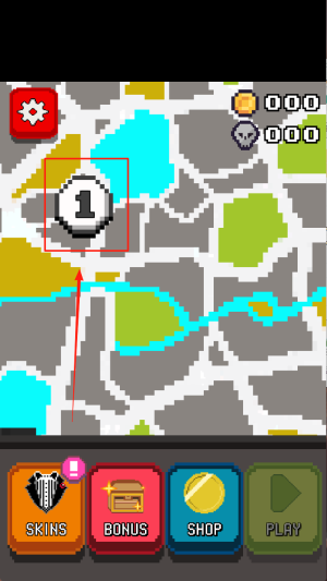 3、进入主菜单:在出现“PLAY、SKINS、BONUS、SHOP”按钮的主界面,点击“PLAY”开始闯关。
