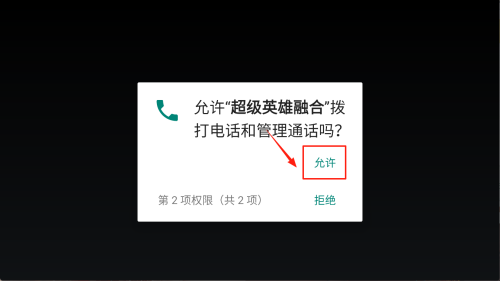 2、授权权限:当系统询问“允许‘超级英雄融合’拨打电话和管理通话吗?”时,点击“允许”完成授权。