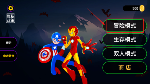 4、选择模式:在主界面点击“冒险模式”或“生存模式”等心仪玩法,即可开始英雄融合之旅。