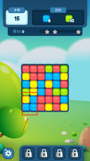 3、进行消除:在游戏界面中,找到并点击相同颜色的方块进行消除,完成目标。