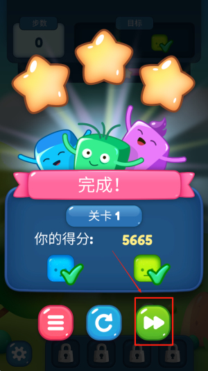 4、完成关卡:成功消除所有目标方块后,点击“下一关”继续游戏或重新开始。