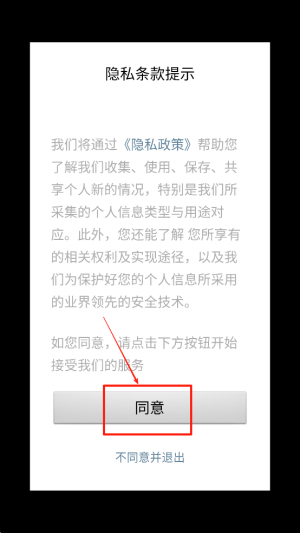1、同意隐私条款:在隐私条款提示界面,点击“同意”按钮以接受条款并继续。