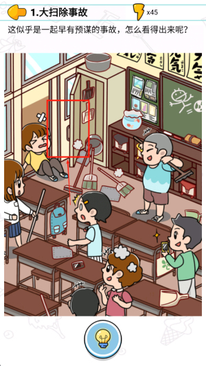 2、开始挑战:在游戏关卡界面,阅读题目后点击“灯泡”图标开始挑战。